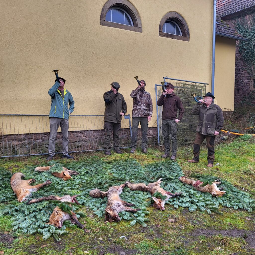 Zur Strecke kamen 12 Füchse und 14 Sauen. Ein ganz besonderer Dank gilt der Ortsgemeinde Aschbach für die Räumlichkeiten und die Ausrichtung der Veranstaltung.